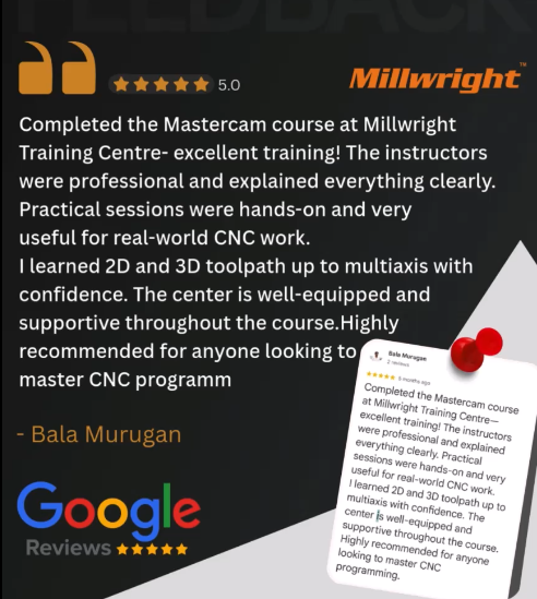 After completing the training, Balamurugan confidently recommends Millwright to anyone who wants to master CNC programming using Mastercam.