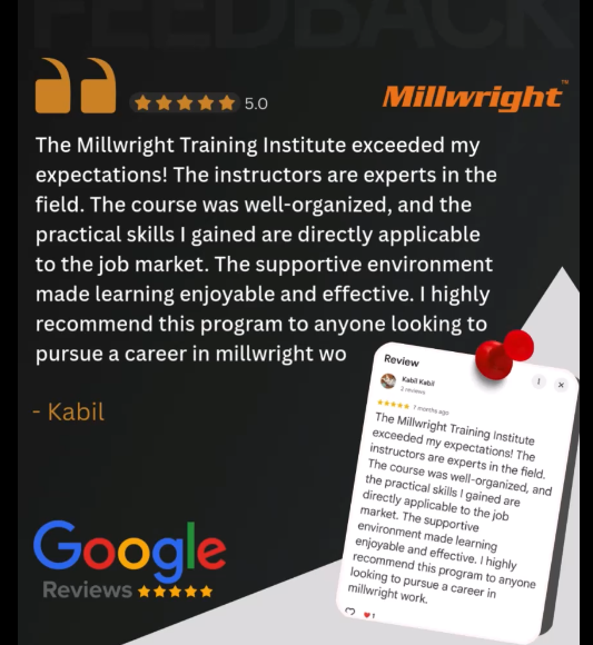 According to him, the instructors at Millwright are experts in the field who explain concepts clearly and logically, making learning smooth and effective even for complex topics.